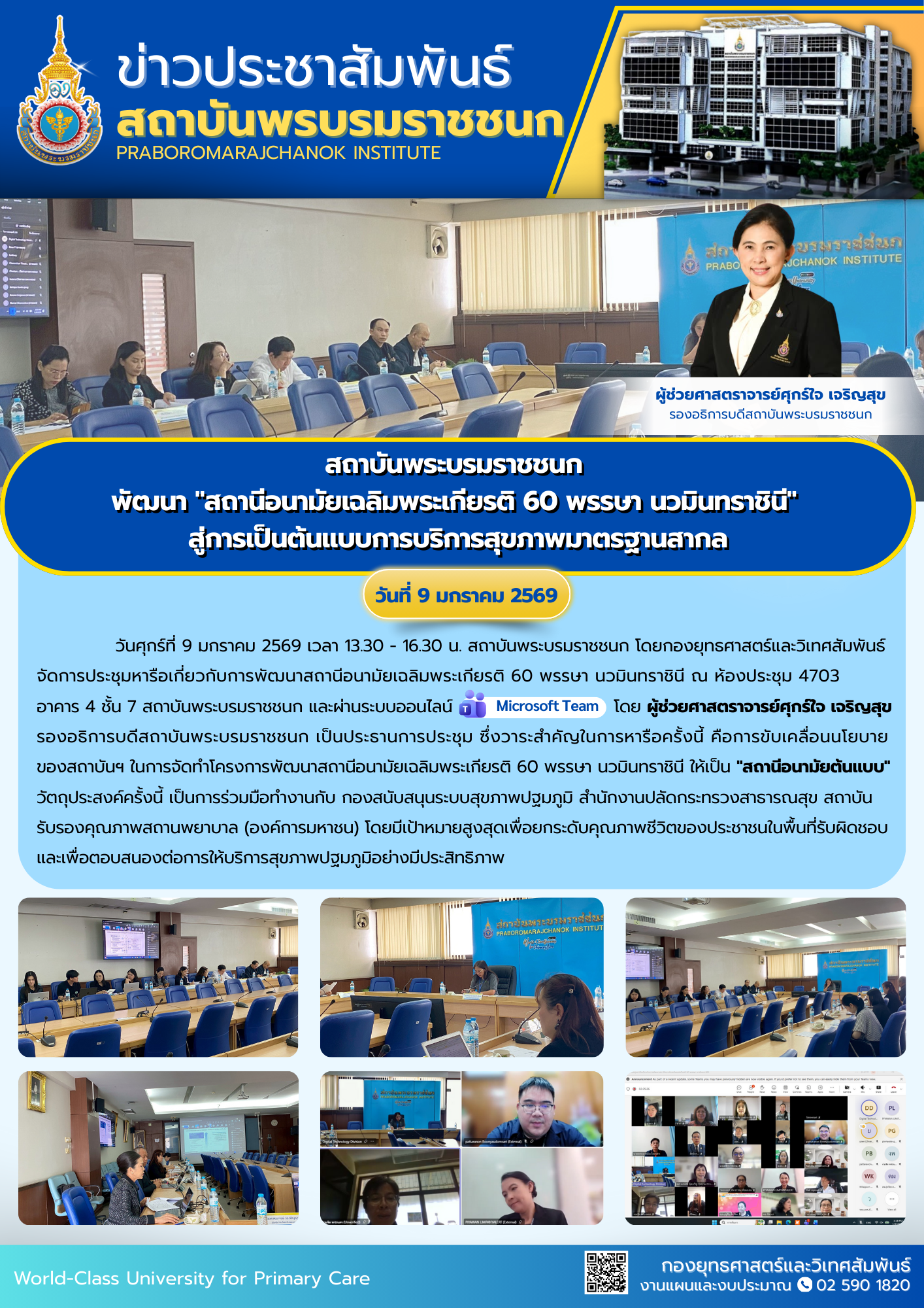 สถาบันพระบรมราชชนก พัฒนา "สถานีอนามัยเฉลิมพระเกียรติ 60 พรรษา นวมินทราชินี" สู่การเป็นต้นแบบการบริการสุขภาพมาตรฐานสากล