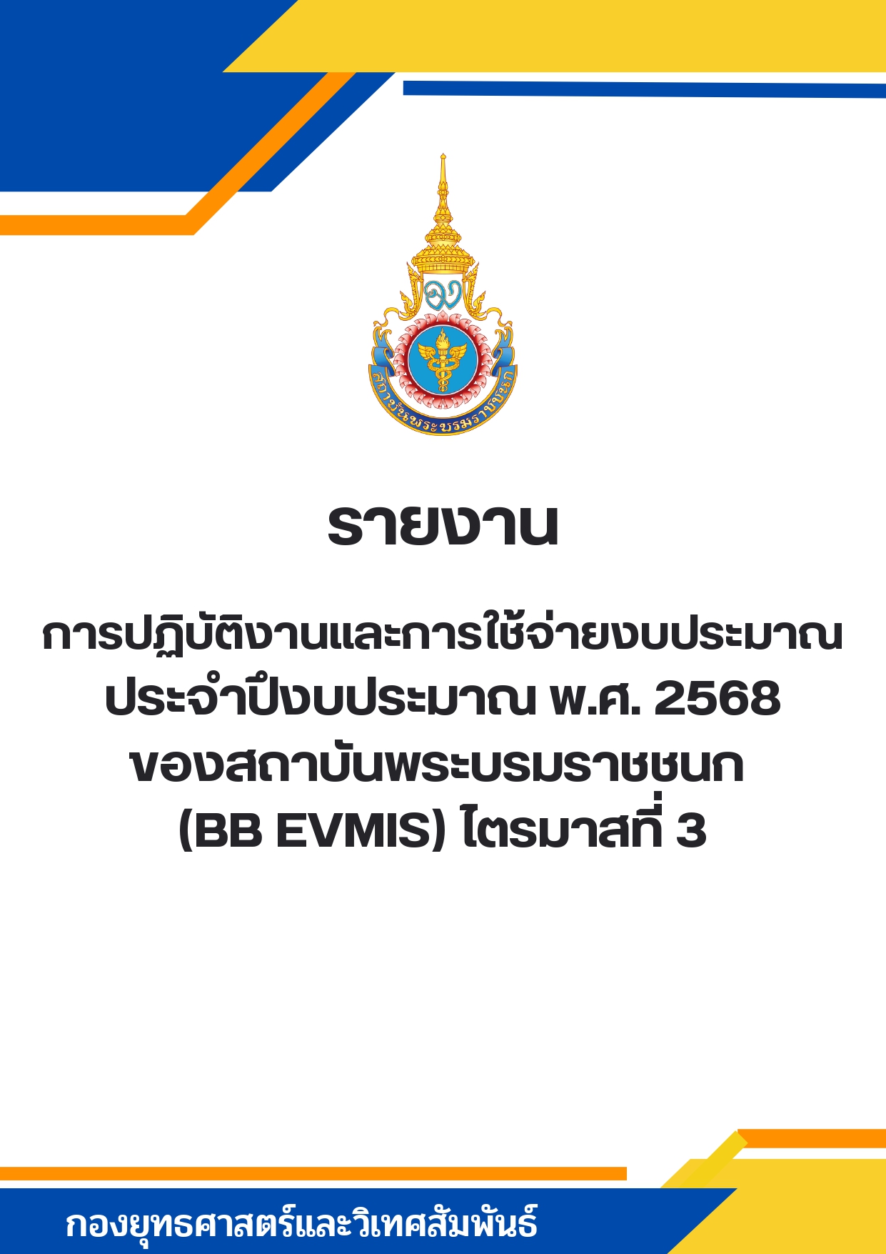 รายงานผลการปฏิบัติงานและการใช้จ่ายงบประมาณ ประจำปีงบประมาณ พ.ศ. 2568 ของสถาบันพระบรมราชชนก (BB EVMIS)