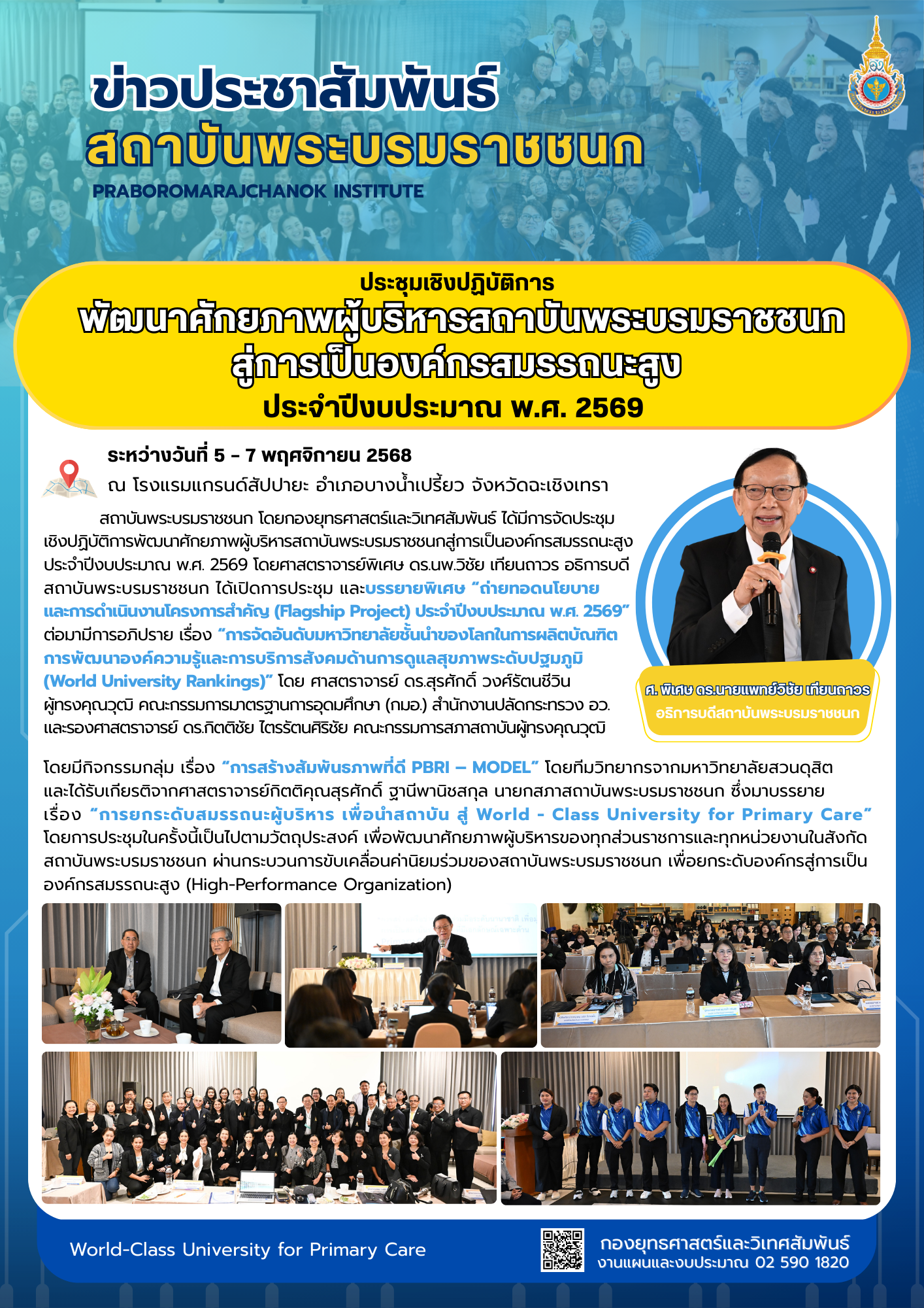 ประชุมเชิงปฏิบัติการพัฒนาศักยภาพผู้บริหารสถาบันพระบรมราชชนก สู่การเป็นองค์กรสมรรถนะสูงประจำปีงบประมาณ พ.ศ. 2569