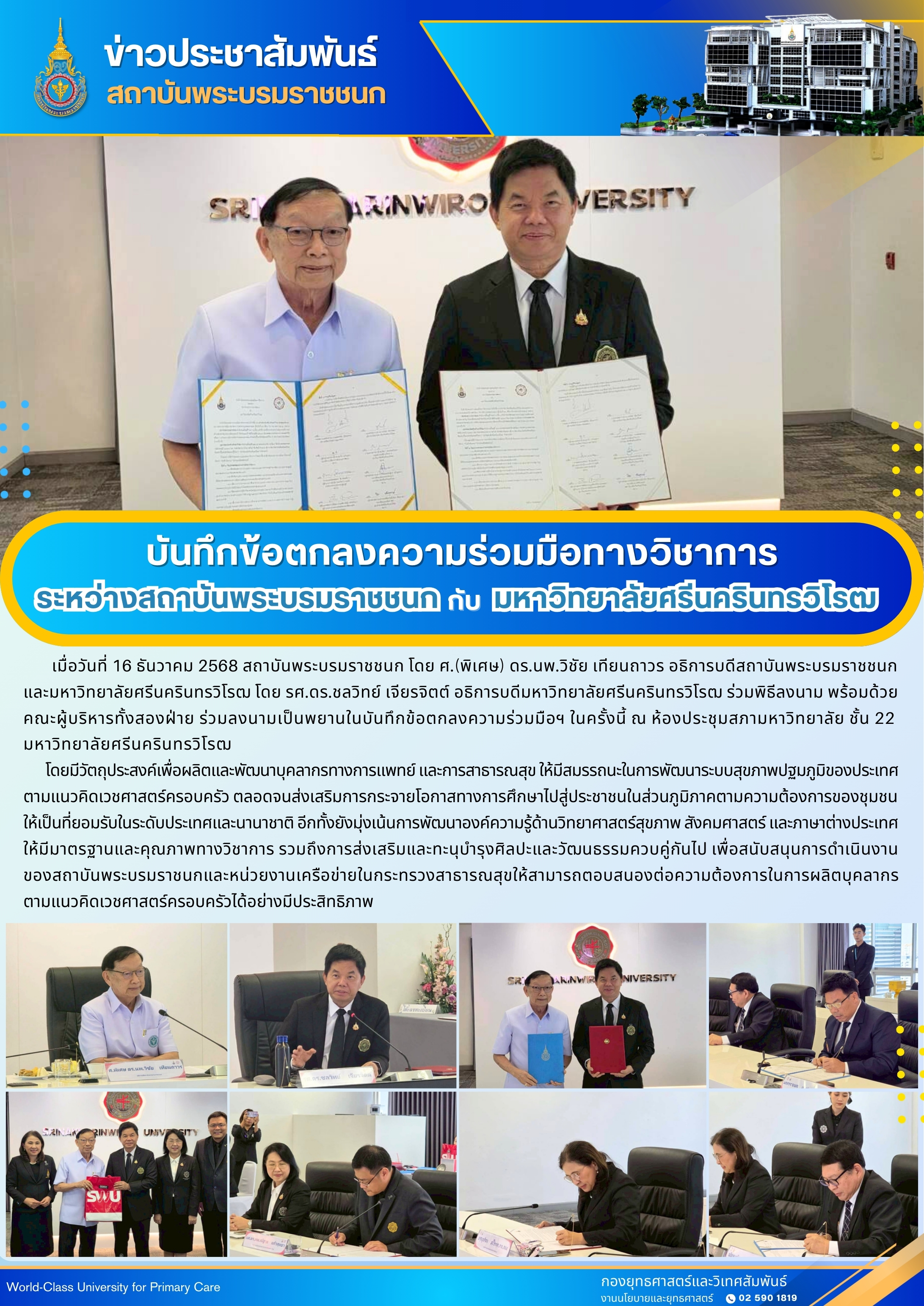พิธีลงนามบันทึกข้อตกลงความร่วมมือทางวิชาการ ระหว่างสถาบันพระบรมราชชนก กับ มหาวิทยาลัยศรีนครินทรวิโรฒ