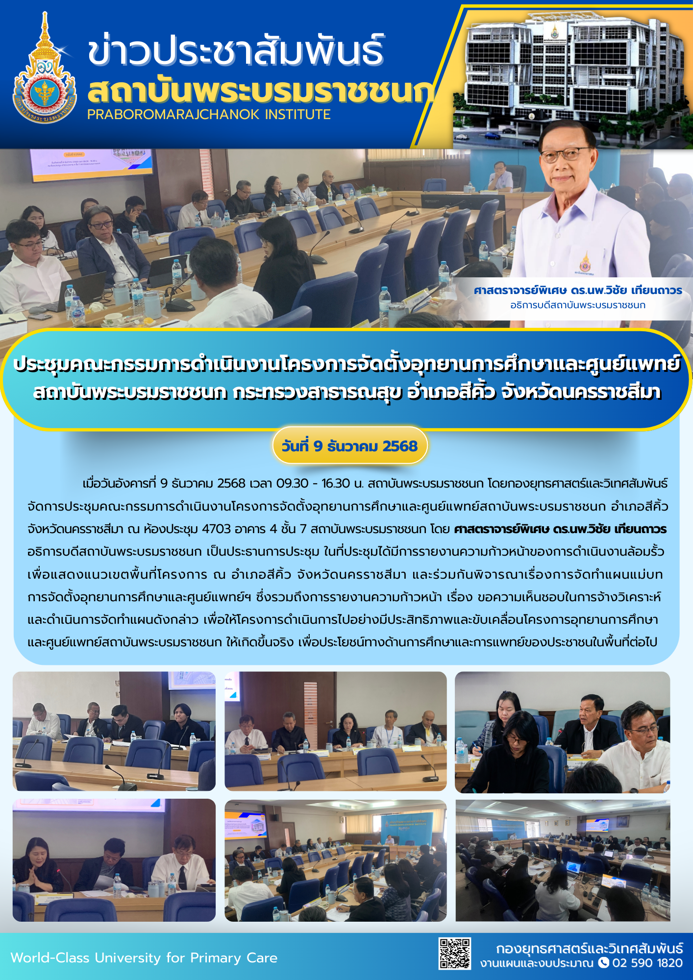 ประชุมคณะกรรมการดำเนินงานโครงการจัดตั้งอุทยานการศึกษาและศูนย์แพทย์ สถาบันพระบรมราชชนก กระทรวงสาธารณสุข อำเภอสีคิ้ว จังหวัดนครราชสีมา