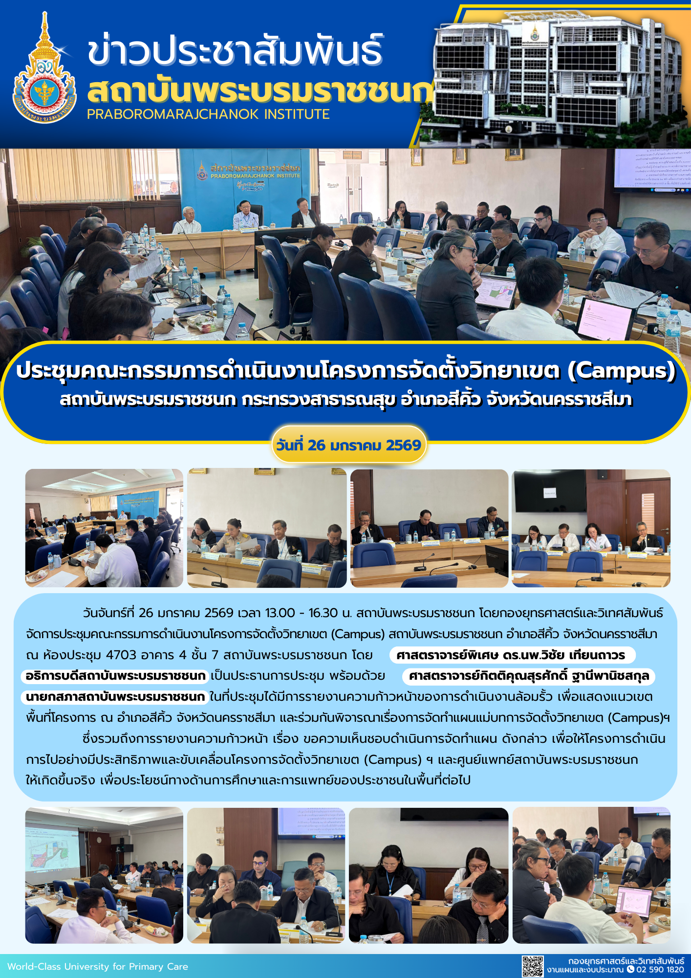 ประชุมคณะกรรมการดำเนินงานโครงการจัดตั้งวิทยาเขต (Campus) สถาบันพระบรมราชชนก กระทรวงสาธารณสุข อำเภอสีคิ้ว จังหวัดนครราชสีมา