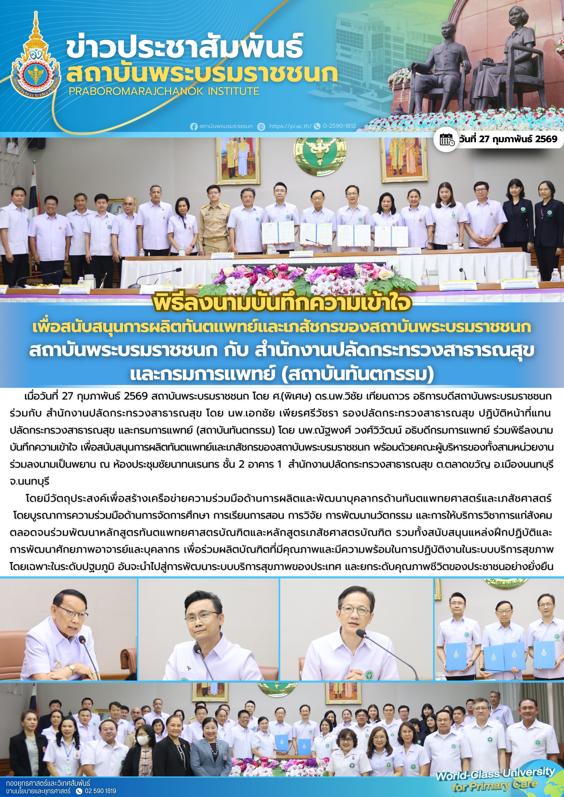 พิธีลงนามบันทึกความเข้าใจ เพื่อสนับสนุนการผลิตทันตแพทย์และเภสัชกรของสถาบันพระบรมราชชนก ระหว่าง สถาบันพระบรมราชชนก กับ สำนักงานปลัดกระทรวงสาธารณสุข และกรมการแพทย์ (สถาบันทันตกรรม)