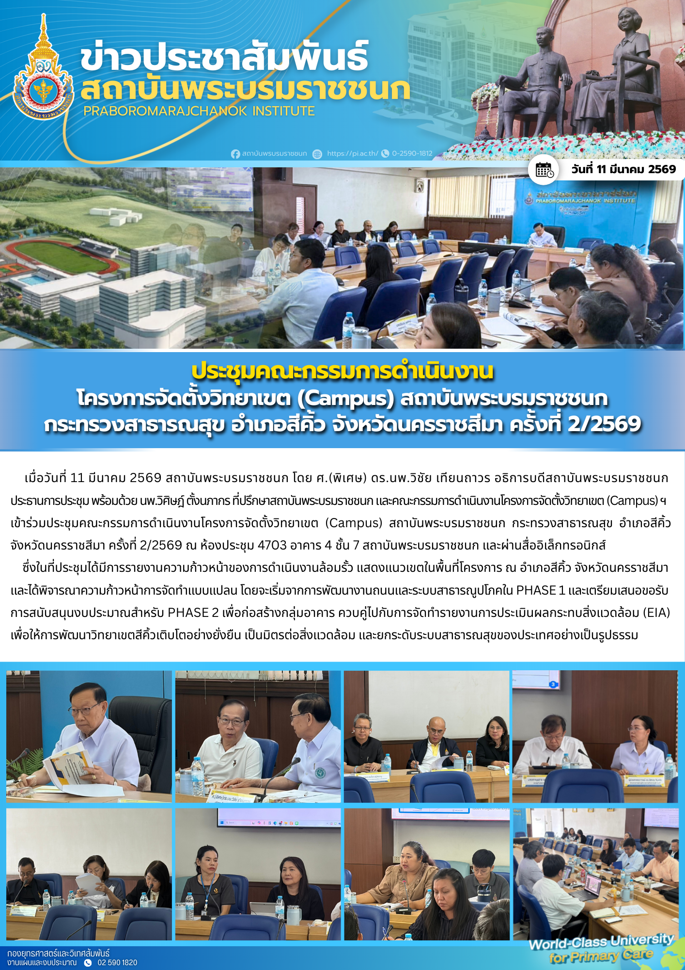 ประชุมคณะกรรมการดำเนินงานโครงการจัดตั้งวิทยาเขต (Campus) สถาบันพระบรมราชชนก กระทรวงสาธารณสุข อำเภอสีคิ้ว จังหวัดนครราชสีมา ครั้งที่ 2/2569
