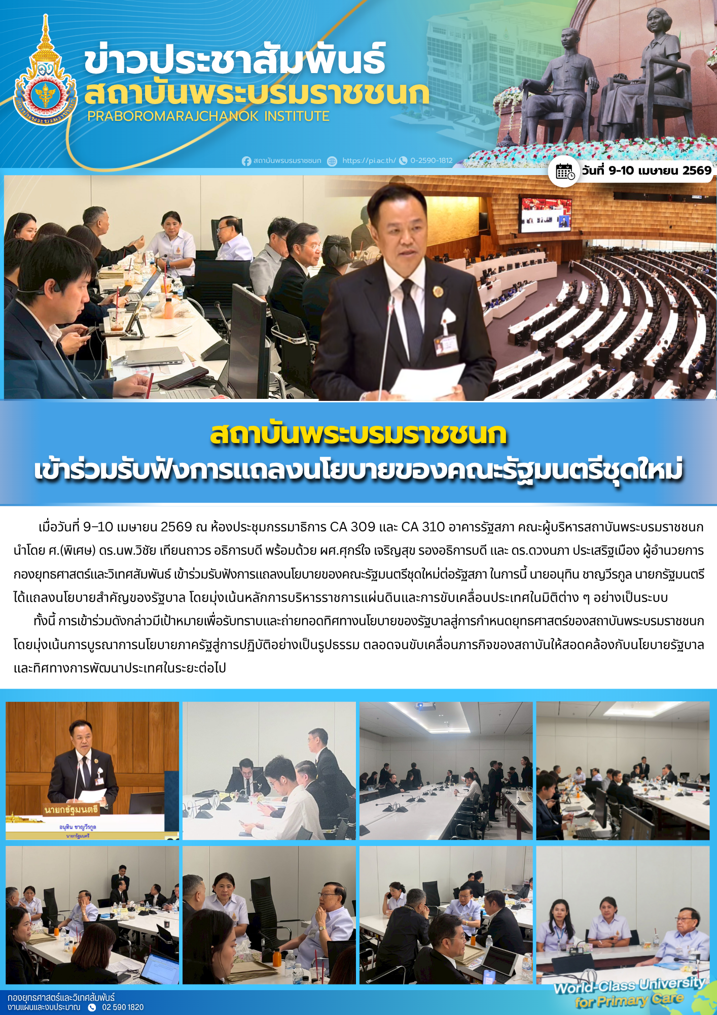 สถาบันพระบรมราชชนก เข้าร่วมรับฟังการแถลงนโยบายของคณะรัฐมนตรีชุดใหม่