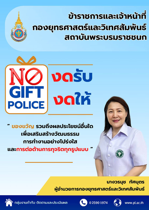 นโยบายไม่รับของขวัญและของกำนัลทุกชนิดจากการปฏิบัติหน้าที่ (No Gift Policy)