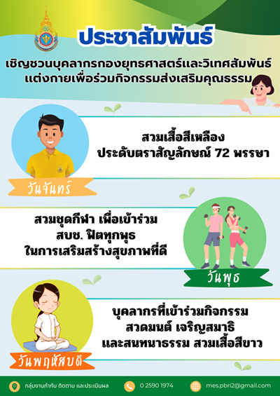 เชิญชวนบุคลากรกองยุทธศาสตร์เเละวิเทศสัมพันธ์ เเต่งกายเพื่อร่วมกิจกรรมส่งเสริมคุณธรรม