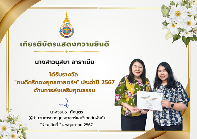 องค์กรคุณธรรมต้นแบบ ประจำปีงบประมาณ พ.ศ. 2567 ของกองยุทธศาสตร์และวิเทศสัมพันธ์