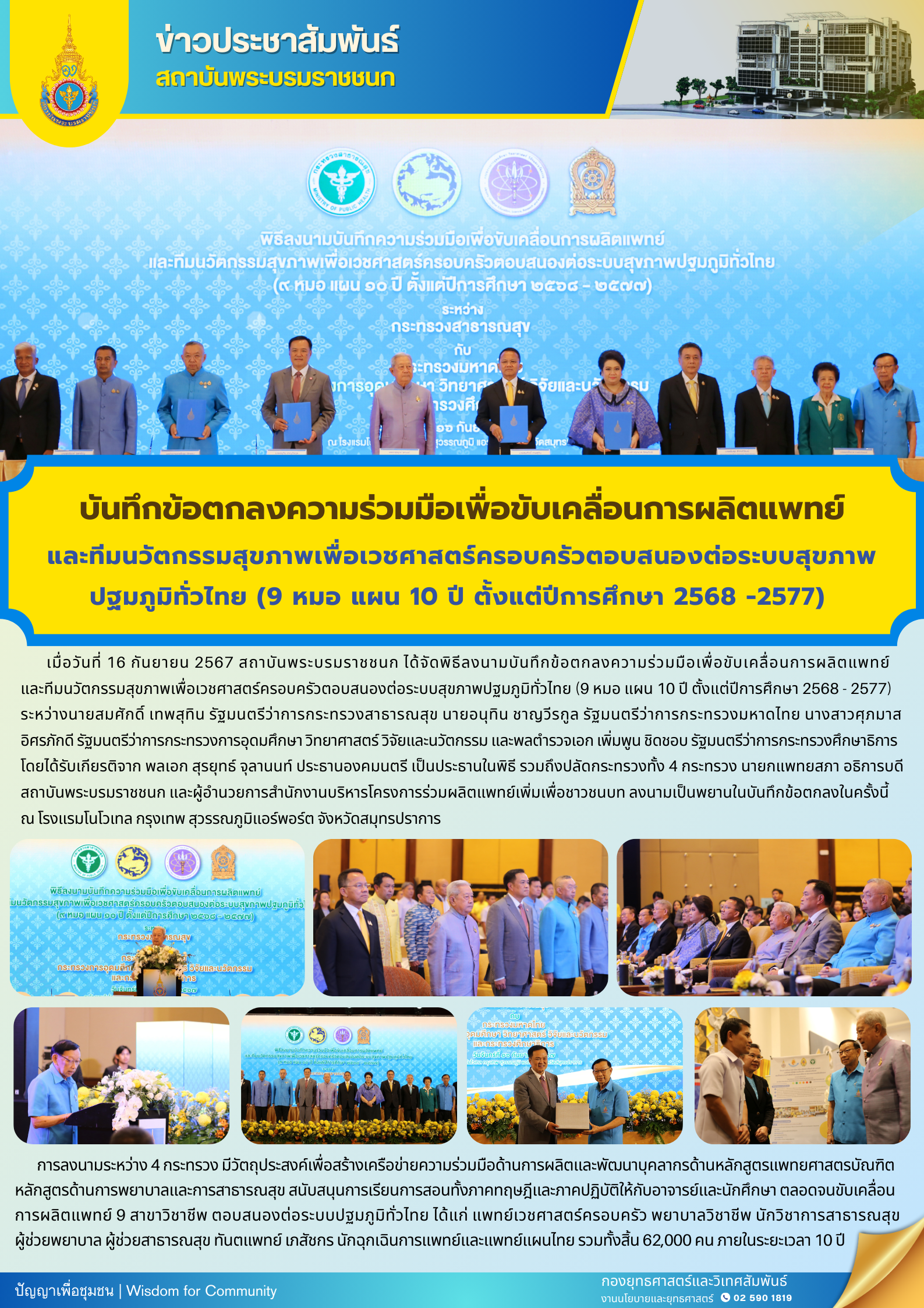 บันทึกข้อตกลงความร่วมมือเพื่อขับเคลื่อนการผลิตแพทย์และทีมนวัตกรรมสุขภาพเพื่อเวชศาสตร์ครอบครัวตอบสนองต่อระบบสุขภาพปฐมภูมิทั่วไทย (9 หมอ แผน 10 ปี)