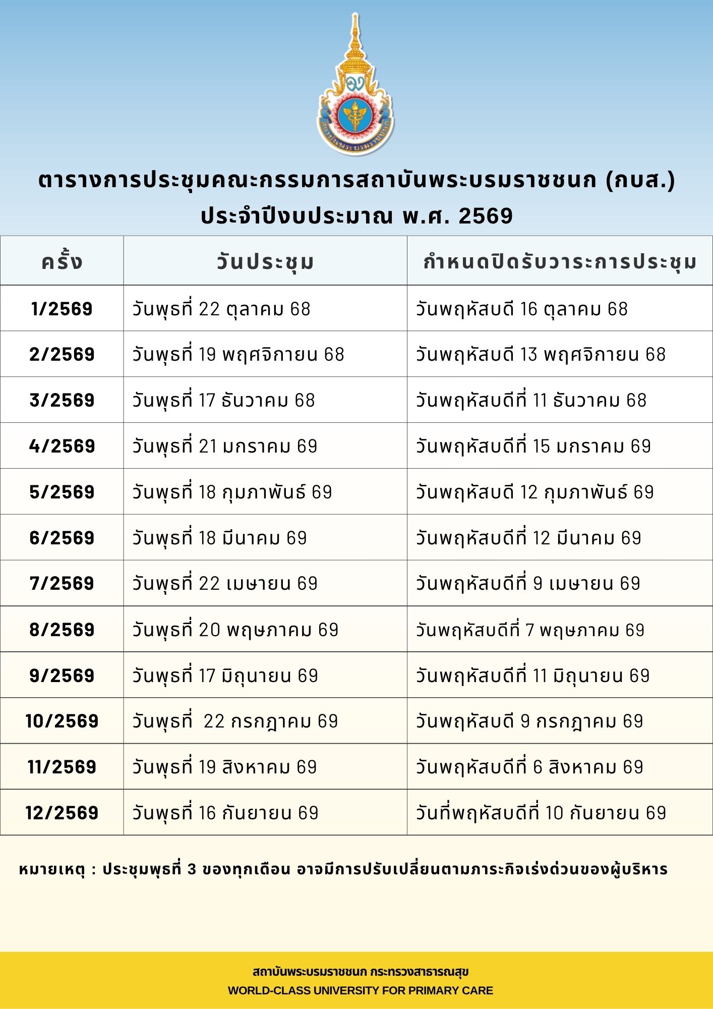 กำหนดการประชุมคณะกรรมการบริหารสถาบันพระบรมราชชนก (กบส.)
