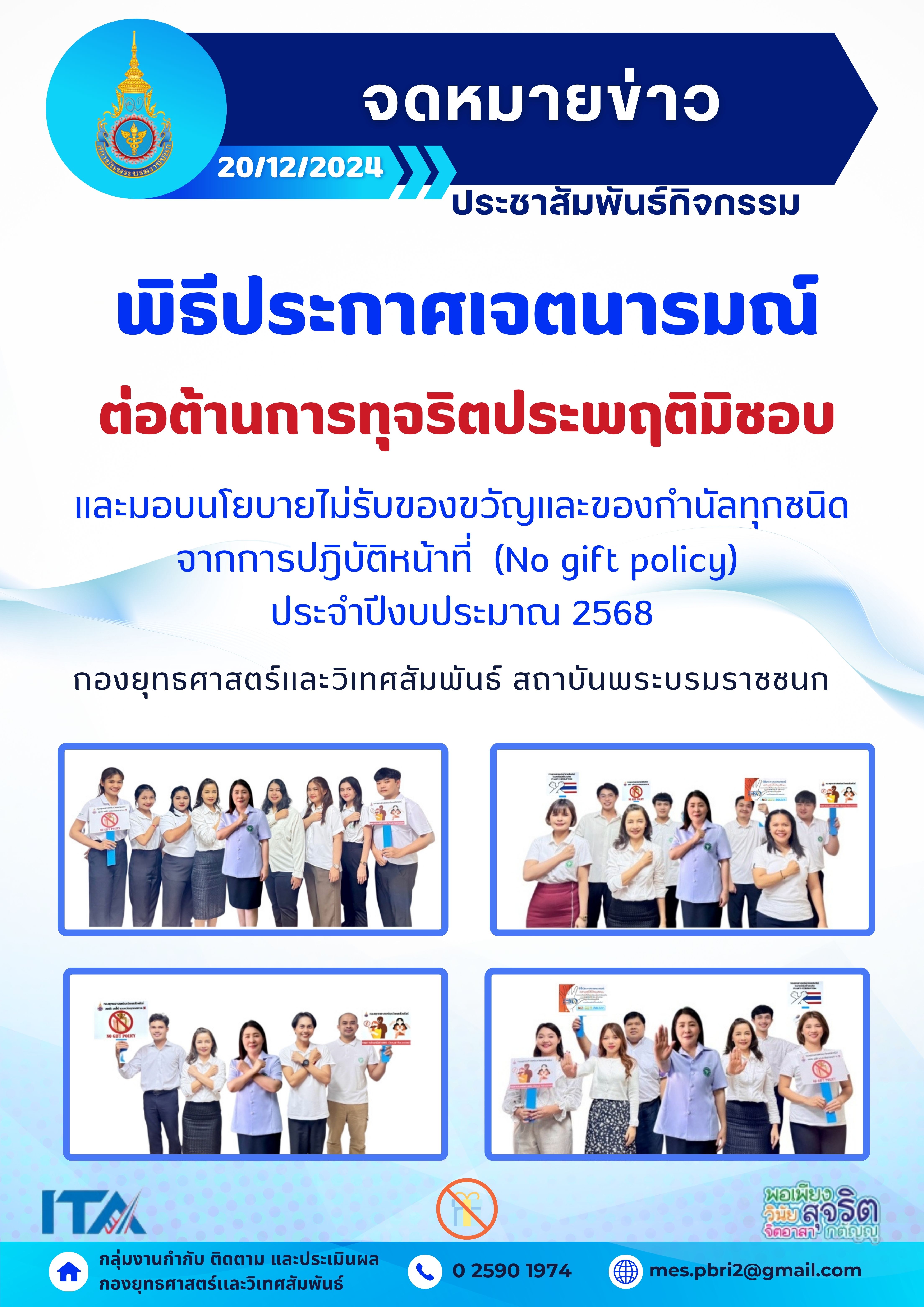 พิธีประกาศเจตนารมณ์ต่อต้านการทุจริตประพฤติมิชอบ